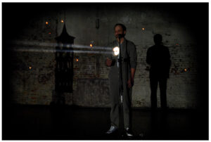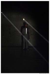 A story is told. First we witness its construction and then its transformation, as if we are looking through a hallucinating prism that distorts the words and images. Following his research at L’L about the poetry of the beat generation and the work of Allen Ginsberg, Brussels-based artist Mathias Varenne has created Hurler sous la lune. Varenne is fascinated by the importance of orality and storytelling, and yet he questions here the custom of perpetuating one single version (History with a capital H) that disregards the existence of a multiplicity of accounts (histories). Influenced by science-fiction practices, Varenne offers a new form of storytelling with this project. By combining text, video, light, and sound, Hurler sous la lune has the form of a narration that is progressively filtered, as if by a chemical substance or a kaleidoscopic lens; a gesture to remind us that our world, locked in its pragmatic narrations, definitely needs unusual stories, images and heroes.