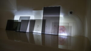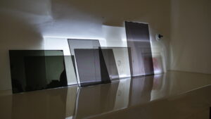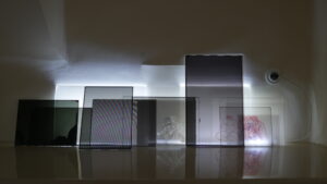 This polymorphic and evolving installation is renewed with each exhibition and proposes a dissection of screens on which traces of their past activity seem to persist. The different « layers » that make up different types of flat screens have been meticulously disassembled and rearranged. On some surfaces, an « analog » gesture, the drawing, revives these decommissioned digital surfaces. The different properties of the technical materials that make up our screens are revealed here and their plastic capacities revealed.